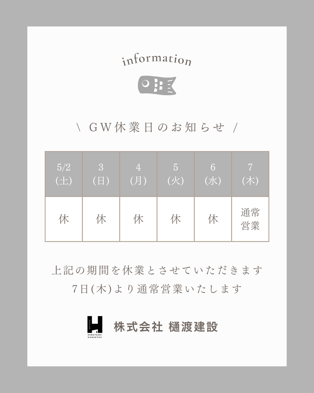 GW休業のお知らせ